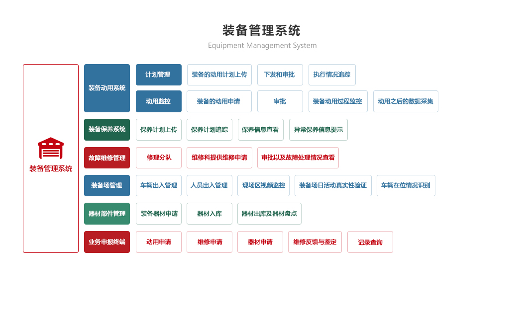 綜合保障系統(tǒng)依托物聯(lián)網(wǎng)、RFID識別和傳感技術(shù),著眼作戰(zhàn)精準保障、戰(zhàn)備常態(tài)保障和官兵生活保障,對戰(zhàn)備物資、裝備器材、營房物資和被裝物資等的全生命周期的電子化管理,對官兵的健康實時監(jiān)護。包含財務(wù)管理、軍需油運、武器裝備、衛(wèi)勤管理、營房管理模塊。確保部隊出動,車輛給養(yǎng)油料跟得上,裝備維護情況實時掌握,營房管理工作平時與戰(zhàn)備同步推進。