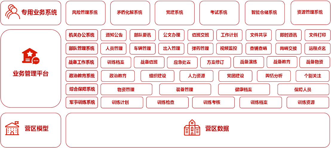 軍營專用業(yè)務(wù)系統(tǒng)包含軍營風險管理系統(tǒng)和矛盾化解系統(tǒng)。